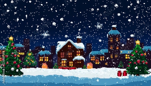 © Umnat, Naklejka premium The design features falling snow, enhancing the holiday spirit.