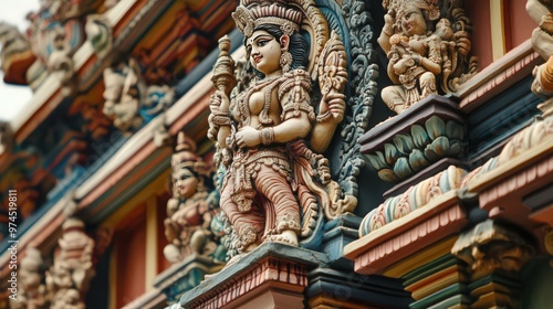 © Thirawat, Fototapeta premium The detailed carvings and statues on a temple