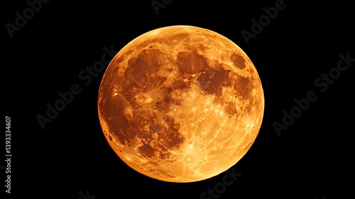 © pentem, Obraz premium The detailed image shows the beautiful glowing orange full moon