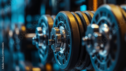 Obraz premium The details of the weights, machines, and rubber flooring create a dynamic...