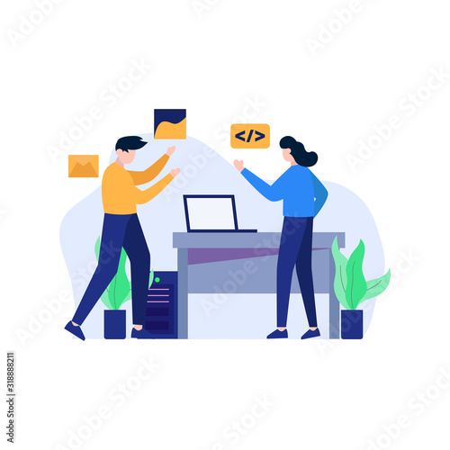 © sixtwentystudio, Obraz premium The developer resets, designs, discusses and makes Android applications vector illustration