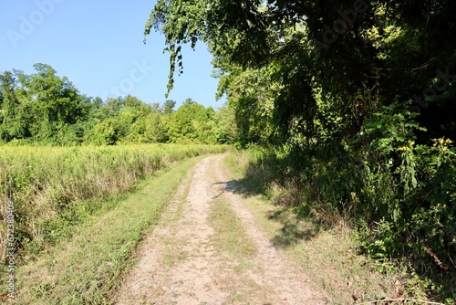 Fototapeta premium The dirt trail in the country on a sunny day.