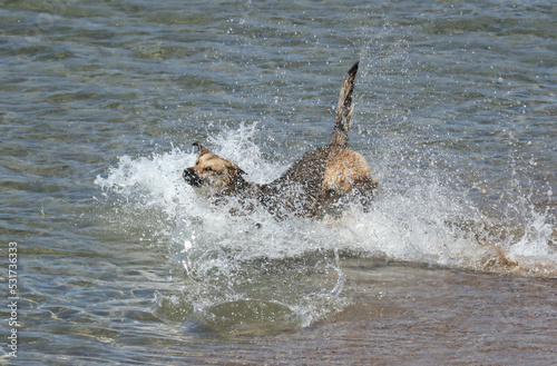 © schankz, Fototapeta premium The dog swims in the sea.