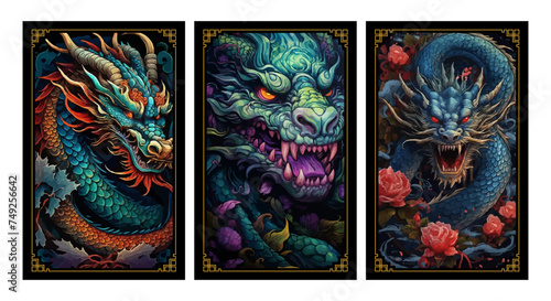 © hadi, Fototapeta premium The dragon, as a guardian of hidden treasures and secrets, comes to life in intricate detail, with its fearsome claws and fiery heart on full display, reminding us of the fantastical stories and legen