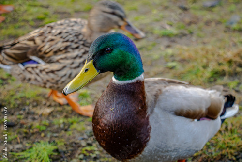 Obraz premium The drake looks sideways at the camera