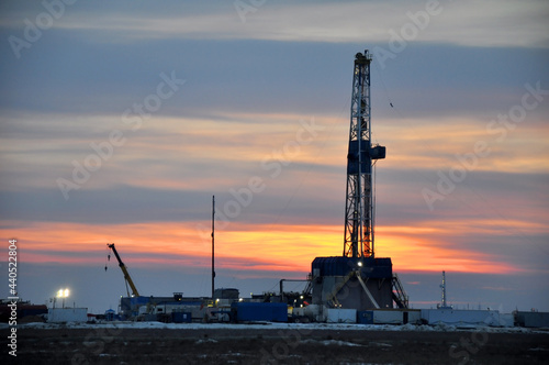 © photostock77, Obraz premium The drilling rig during sunset