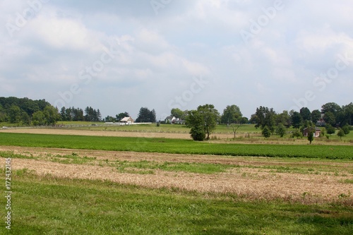 © Al, Obraz premium The drying grass in the field landscape on sunny hazy day.