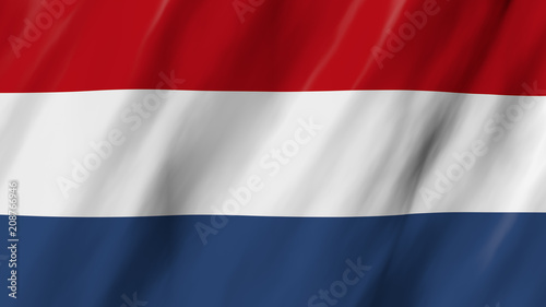 © serghi8, Naklejka premium The Dutch flag in 3d, waving in the wind, on close