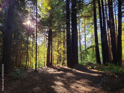 © Salil, Obraz premium The early evening sun shines on the floor of the Redwood Forest in Mendocino, California