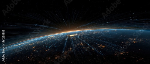 Obraz premium The Earth illuminated by digital connections and cosmic energy streams.