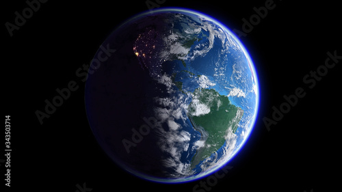 Obraz premium The Earth Space Planet 3D illustration background. City lights on planet. elements from NASA