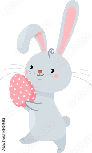 © Alena, Obraz premium The Easter Bunny carries an egg. Vector set illustration for easter holiday.
