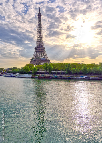 Fototapeta premium The Eiffel Tower across the Seine River in Paris, France on a sunny day with...