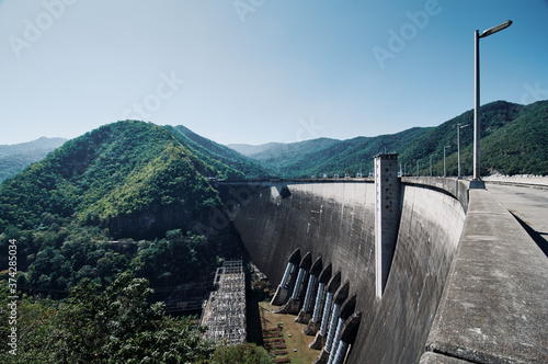 © luengo_ua, Fototapeta premium The electric energy from water. The Bhumibol Dam(formerly known as the Yanhi Dam) in Thailand. The dam is situated on the Ping River.