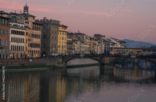 © Glass Bear, Fototapeta premium The embankment of the Arno River on a winter evening