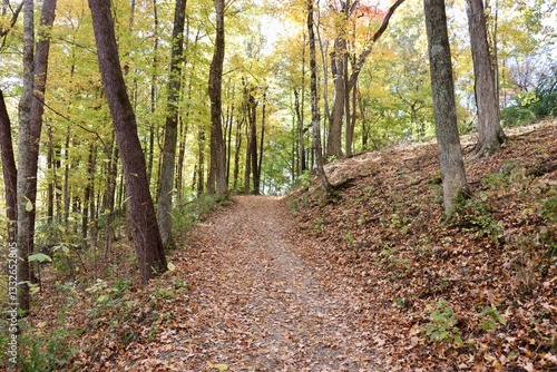 © Al, Fototapeta premium The empty hiking trail in the autumn forest.