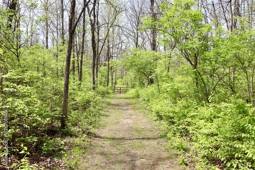 © Al, Obraz premium The empty hiking trail in the woods on a sunny day.