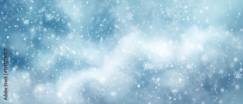 Fototapeta premium The enchanting snowfall creates a serene winter background filled with soft blue hues.