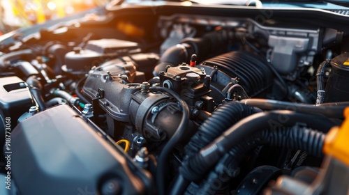 © Korawan, Obraz premium The engine of a car is shown in detail