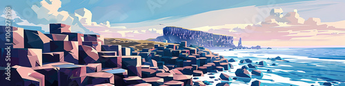 © FloxyArt, Fototapeta premium The Enigmatic Giant's Causeway: A Geometric View