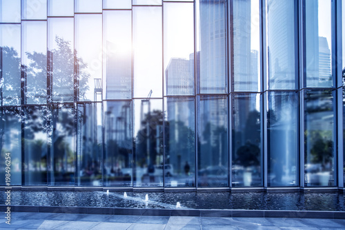 © zhouyilu, Obraz premium The entrance of the modern Enterprise Building, in the face view of the blue tone.