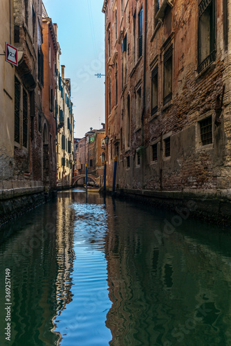 © gdefilip, Fototapeta premium The entrances on the water channels of the old palaces in Venice, as seen from a gondola