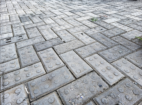 © Rury, Fototapeta premium The environmentally friendly pathway made from recycled plastic paving blocks, colored gray and patterned, features a unique interlocking design for maximum 3D and rendering software purposes.