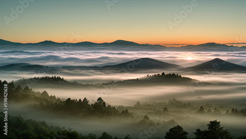 Fototapeta premium The Ethereal Misty Hilltop Landscape Generative AI