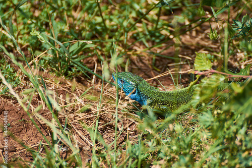 Fototapeta premium The European green lizard (Lacerta viridis)