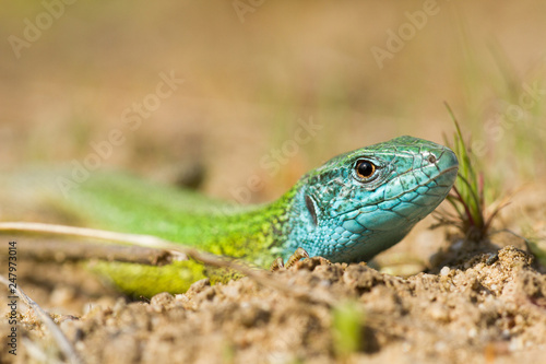 © MF Photo, Fototapeta premium The European Green lizard Lacerta viridis czech