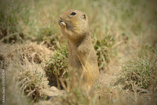 Fototapeta premium The European ground squirrel (Spermophilus citellus), also known as the...
