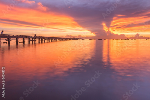 © Tum, Naklejka premium The evening bridge at the Buddha statue the lake of Asia