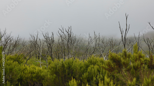 Obraz premium The evergreen cloud forest Garajonay with its incomparable atmosphere inspires in the heart of the Canary Island of La Gomera with the highest mountain Alto de Garajonay.