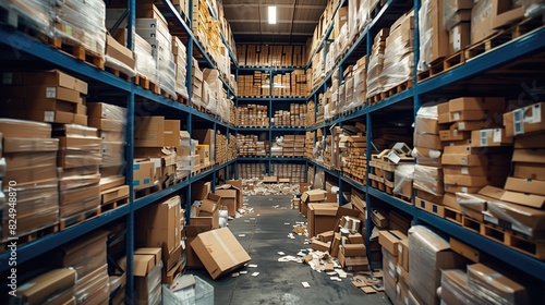 Fototapeta premium The expansive warehouse is packed with numerous boxes and shelves