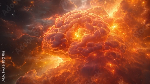 © Rana, Obraz premium The explosive fusion of knowledge and imagination captured in the intricate details of a brain's eruption of creativity, like a supernova igniting the cosmos