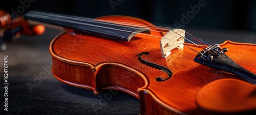 Fototapeta premium The exquisite craftsmanship of a finely tuned wooden violin in detail.