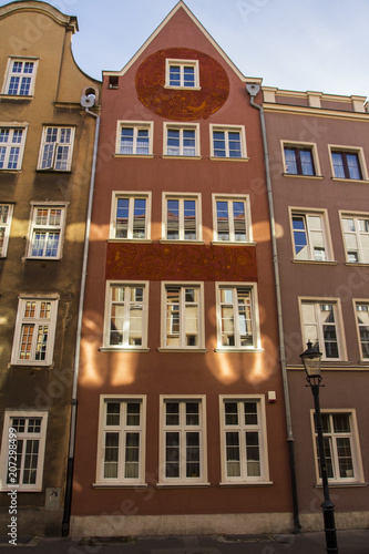 Fototapeta premium The facade of the beautiful historic building on the street of the Old Town of Gdansk. Poland