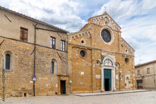 © Kirk Fisher, Obraz premium The facade of the Volterra Cathedral of Santa Maria Assunta in the Piazza Duomo of the Tuscan hill town of Volterra, Italy.