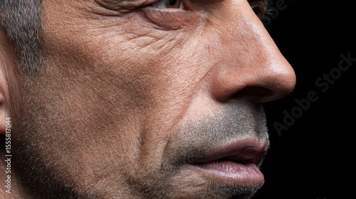 © LuDo, Obraz premium The face of a man characterized by a mustache and a significant space between his lips