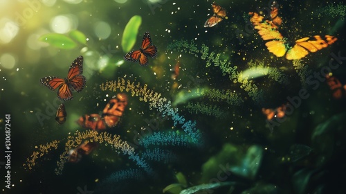 © Black, Obraz premium The fairy butterfly dance in the dream forest
