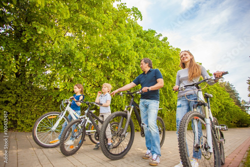 © yurolaitsalbert, Obraz premium The family in the park on bicycles