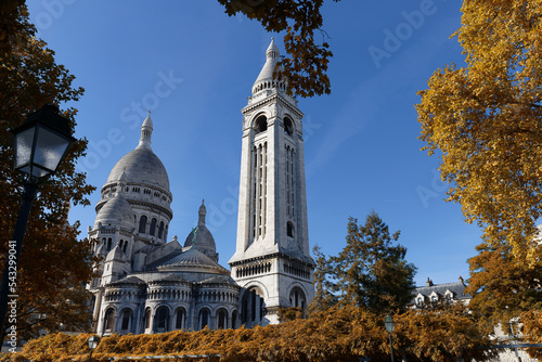 Fototapeta premium The famous basilica Sacre Coeur with autumnal trees , Paris, France.