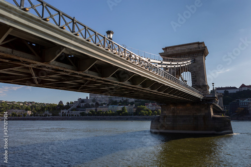 Obraz premium The famous Chain bridge in Budapest on a sunny afternoon.