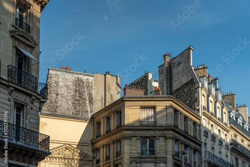 Fototapeta premium The famous gray Parisian roofs against the background of the blue sky. French...
