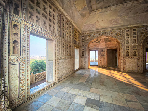 © abrilla, Fototapeta premium The famous red fort in the city of Agra, India. Tourists visit a popular tourist attraction.
