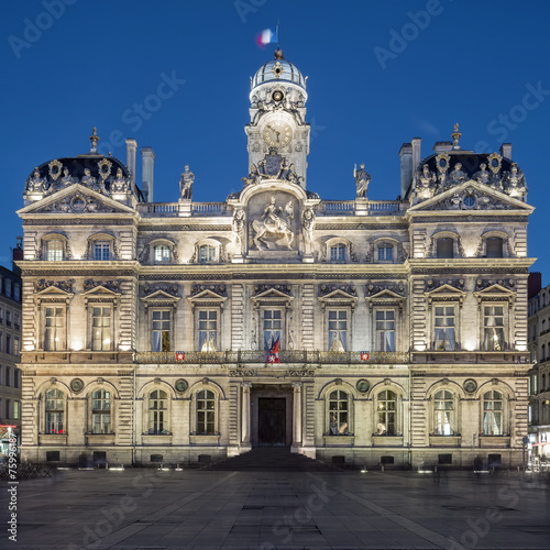© Frédéric Prochasson, Obraz premium The famous Terreaux square in Lyon city by night
