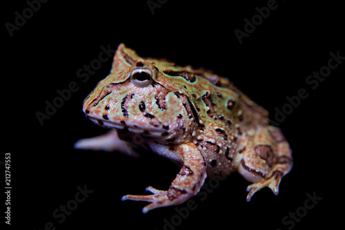 Fototapeta premium The Fantasy horned froglet isolated on black