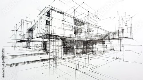 Obraz premium The Fascinating World of Abstract Architectural Drawings: A Blend of Creativity and Innovation. Showcasing Unconventional Designs and Inspiring Spatial Concepts.