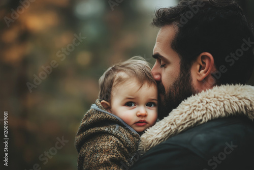 © Nini sun, Fototapeta premium The father hugged and kissed the lovely child