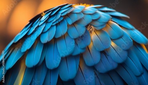 © SH Design, Fototapeta premium The feathers of a bird are shown in full color, with a blue and orange hue